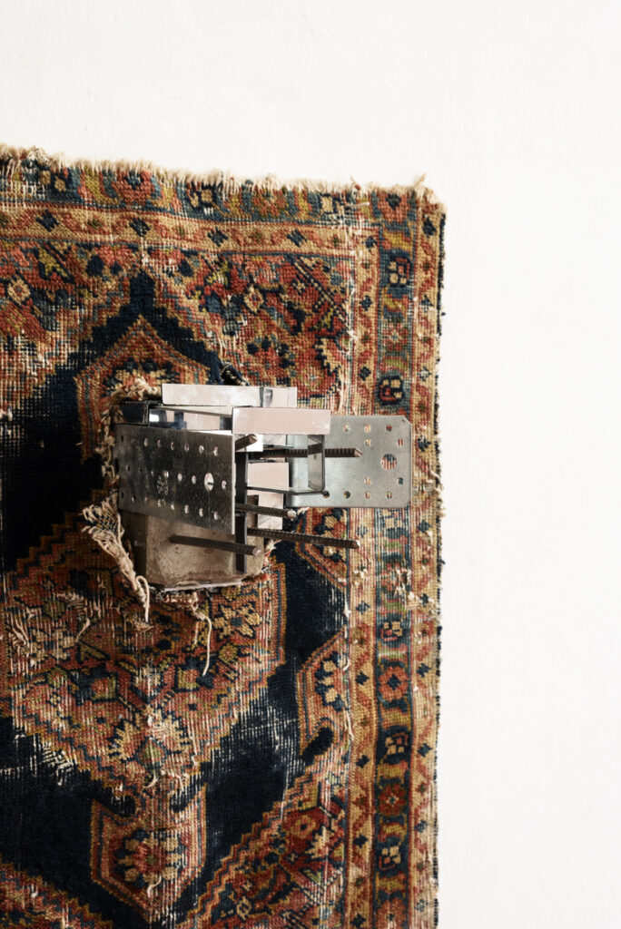 La metafora della crepa attraversa l’intero percorso espositivo. In Line by line, I read you, gli interstizi tra fili di lana allentati evocano la trama di un tappeto — oggetto profondamente radicato nella cultura iraniana — quale spazio di convivenza tra tradizione e trasformazione. Le crepe non sono segni di dissoluzione, ma aperture attraverso cui nuove identità possono emergere. Il passato, collettivo e individuale insieme, non viene eroso bensì riattraversato, disfatto e rifatto affinché i nodi restino visibili, affinché la memoria non venga levigata fino a diventare innocua.