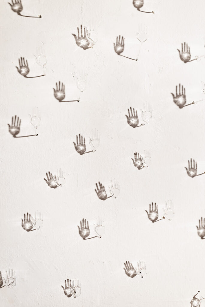 Emblematica è l’opera I hear you and I am with you: eteree quanto stentoree manine di vetro che si protendono verso il cuore dello spettatore, attraversando simbolicamente muri di mutismo e oppressione. Non vi è retorica accusatoria, ma un invito alla presenza: sostare nel ricordo, assumere la memoria come atto di relazione. La fragilità del vetro si fa qui forza silenziosa, capace di incidere senza ferire, un fermata di assestamento per riallineare ad una forma di ascolto e di relazione sana e virtuosa.
