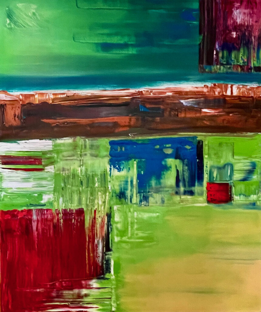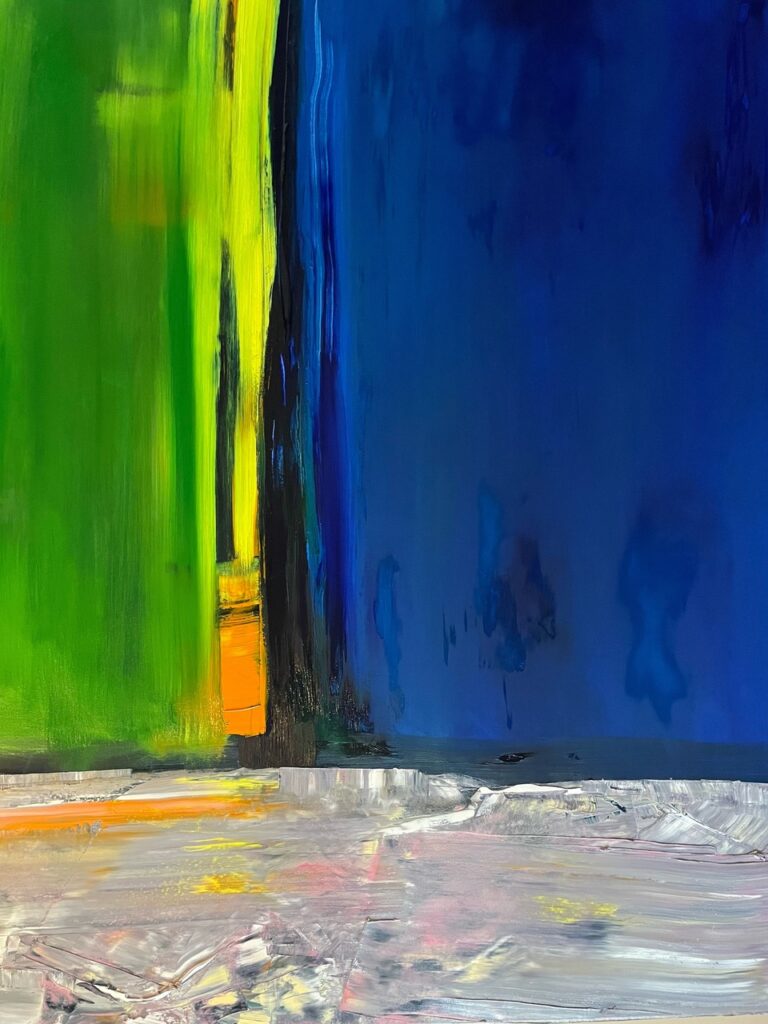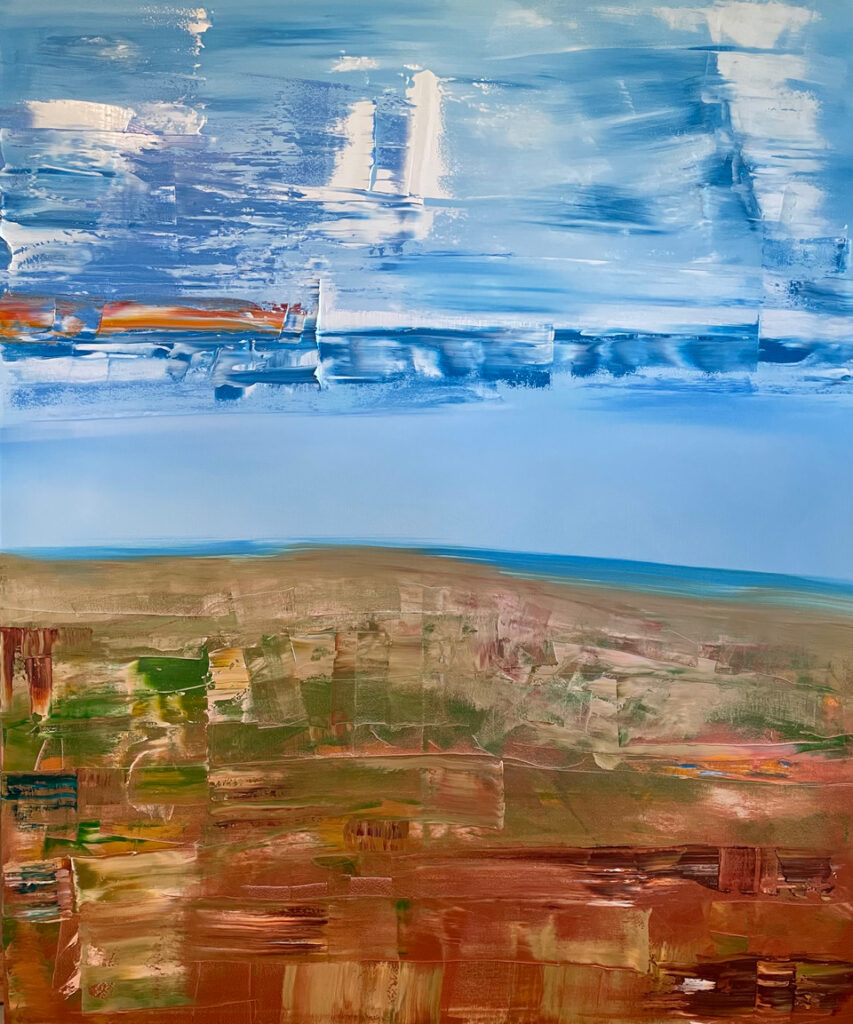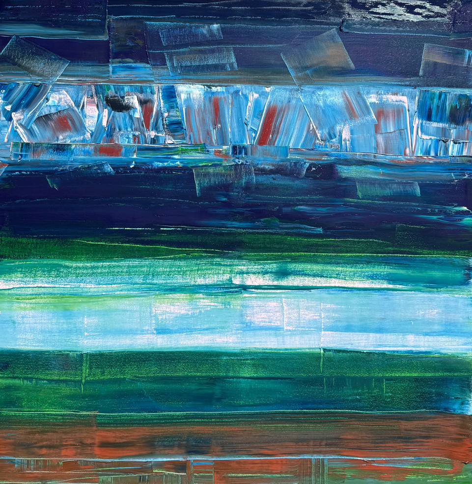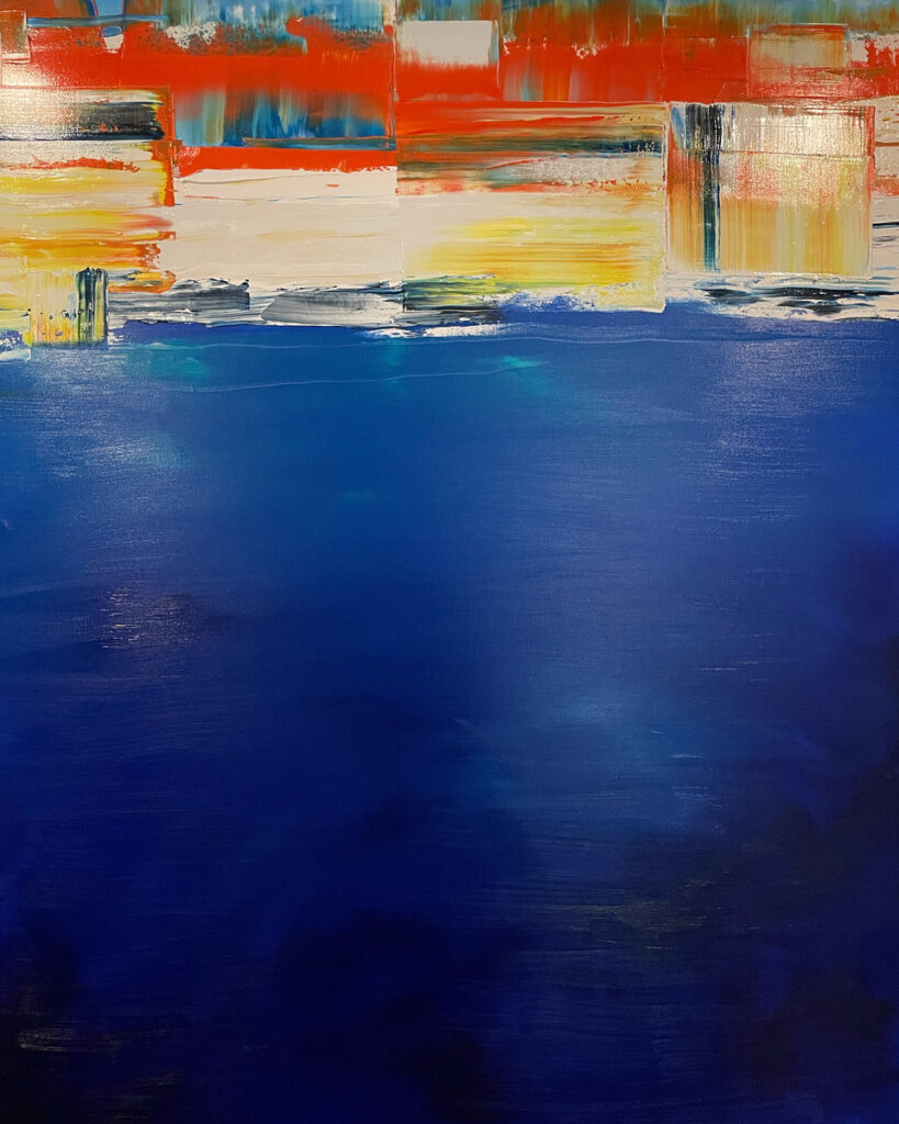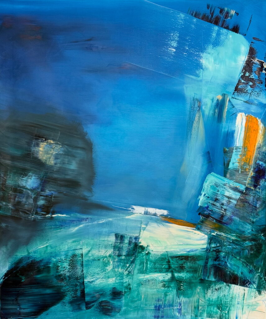 Jeff Spees è artista e professore di medicina all’Università del Vermont. I suoi dipinti si ispirano profondamente al mare e alla pittura espressionista astratta della Bay Area di San Francisco. Le sue tele, caratterizzate da colori vibranti e pennellate fluide, evocano correnti marine, flussi e movimento continuo, immergendo lo spettatore sotto la superficie dell’oceano. Il suo lavoro entra in dialogo ideale con artisti come Richard Diebenkorn, Mark Rothko e Franz Kline, ai quali Spees si ispira per l’intensità emotiva e la forza formale. La sensibilità cromatica che richiama Rothko e il gesto libero che risuona con Kline si fondono nella sua pittura, dando voce all’energia e alla vitalità del mondo marino. La sua duplice esperienza tra arte e scienza si traduce in una pratica che unisce osservazione, empatia e profonda coscienza ambientale.