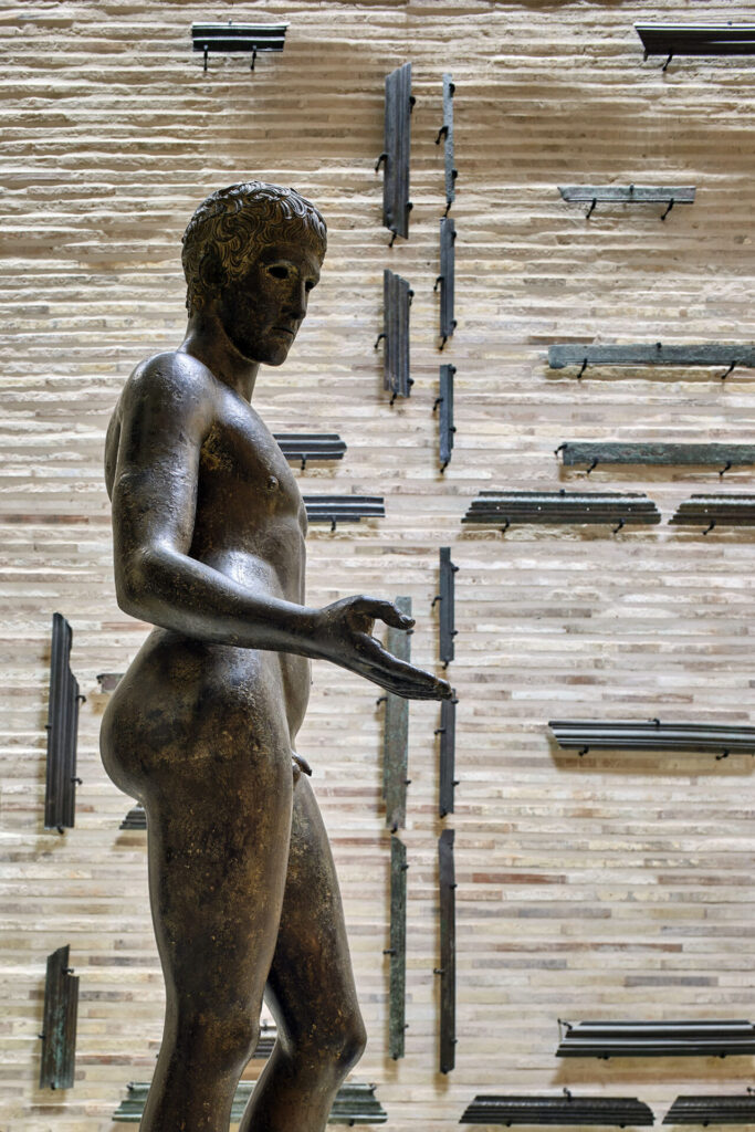 Accanto ad essa, si ammirerà il cosiddetto Idolino di Pesaro, scoperto nella città marchigiana nell’ottobre del 1530 a seguito dei lavori di scavo per le fondazioni della casa del nobile pesarese Alessandro Barignani, alle spalle del Palazzo Ducale.