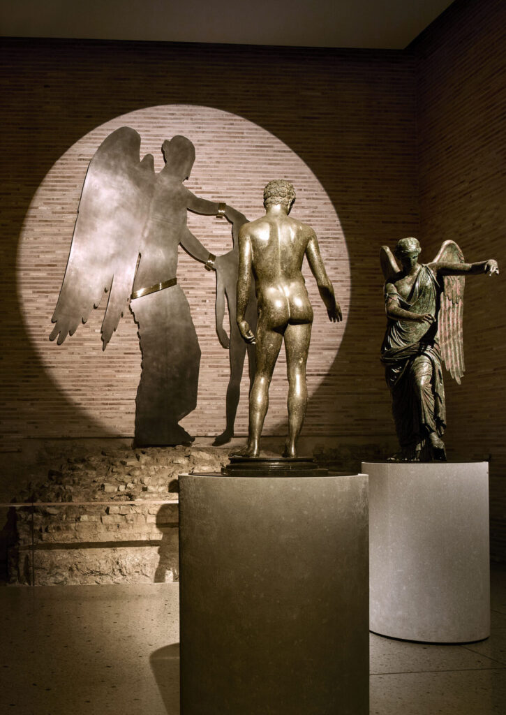 La Vittoria Alata di Brescia e l’Idolino di Pesaro proveniente dal Museo Archeologico Nazionale di Firenze, in un inedito allestimento creato da Francesco Vezzoli per la cura di Donatien Grau.
