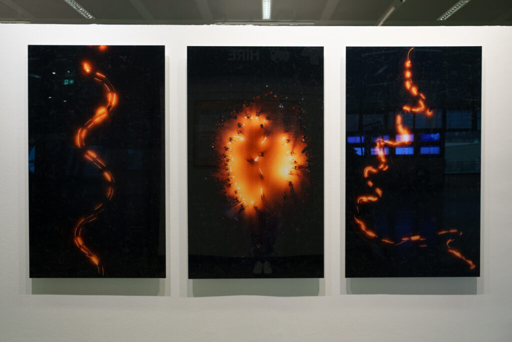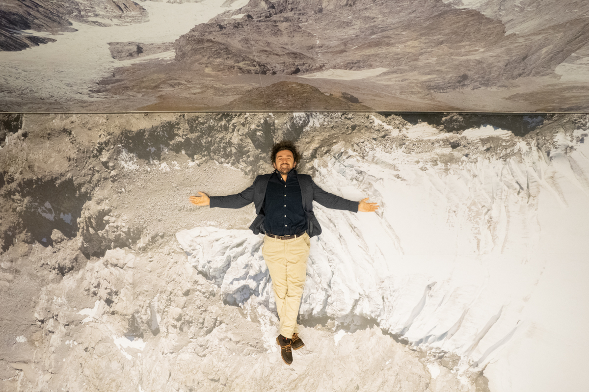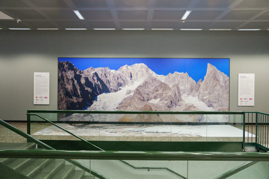 Ogni passo altera l’immagine, la rovina, esattamente come il cambiamento climatico erode quotidianamente i ghiacciai in tutto il mondo. L’ambiente veloce dell’aeroporto si trasforma così in un luogo in cui l’osservazione potrebbe diventare anche una presa di coscienza.