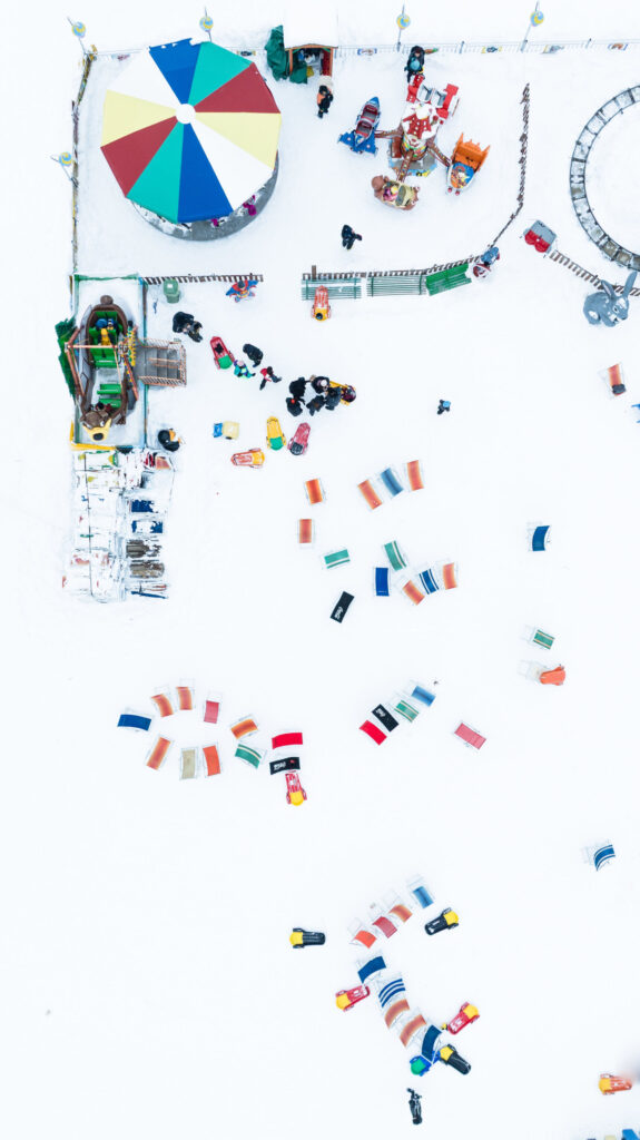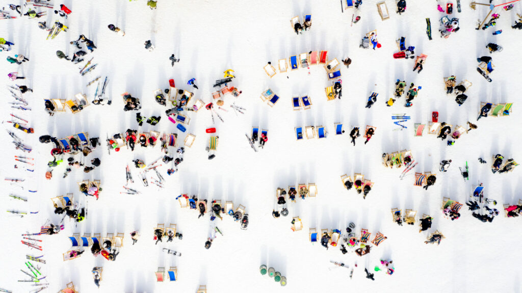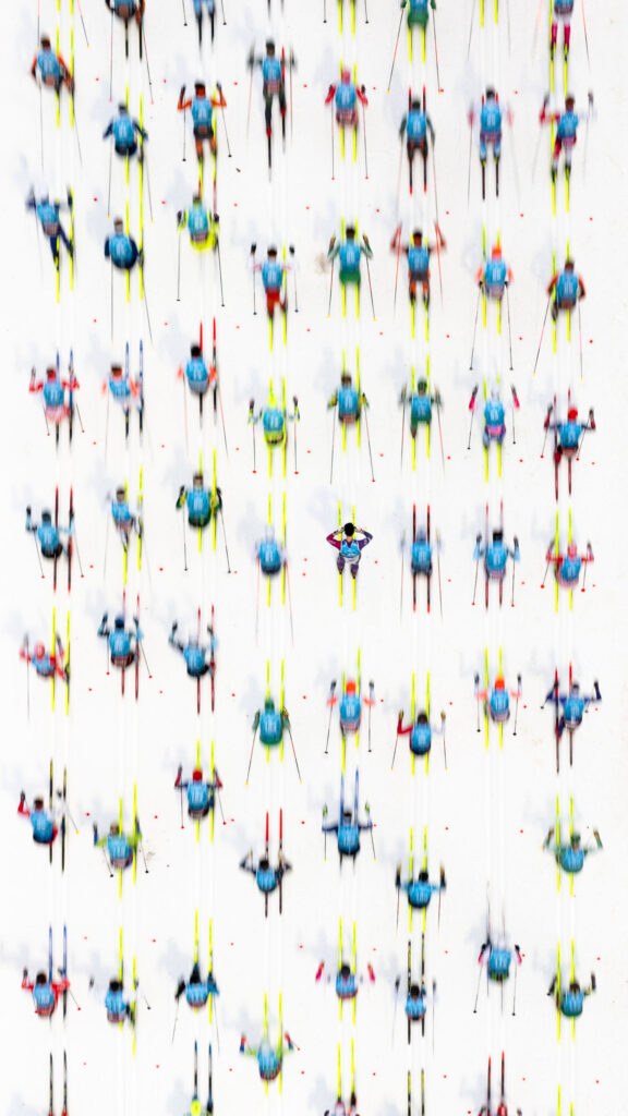 Il titolo White Entropy nasce dall’incontro tra due concetti opposti e allo stesso tempo complementari. Il bianco a rappresentare la purezza e il silenzio mentre l’entropia vuole indicare disordine e trasformazione. La forza evocativa della mostra si percepisce soffermandosi lungo il percorso suggerito dalle immagini ottenute con un’inquadratura zenitale. Dalla neve intatta plasmata solo dai venti alpini ai segni dell’invasione umana, dalla montagna incontaminata al paesaggio alterato.