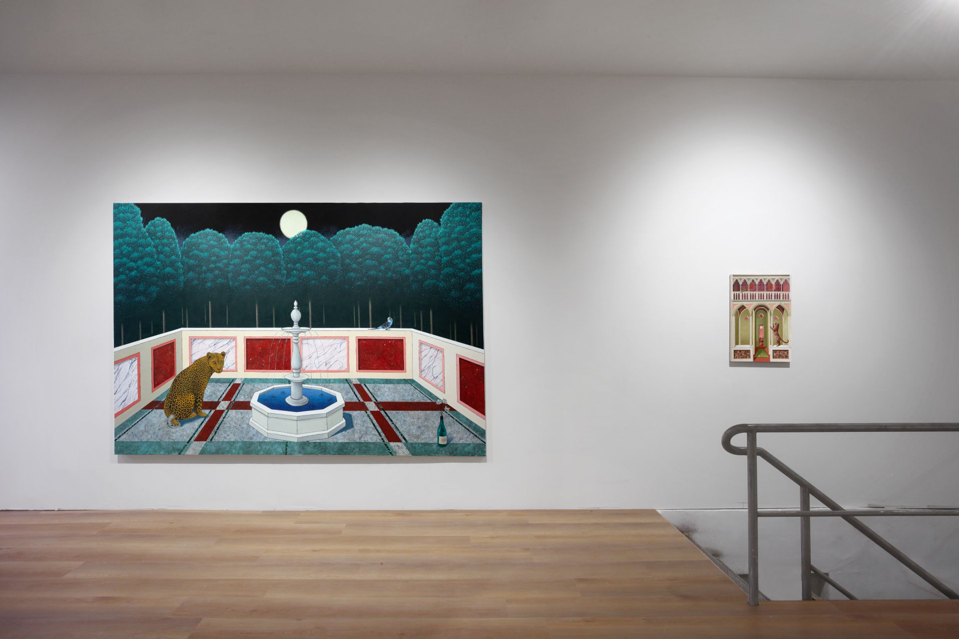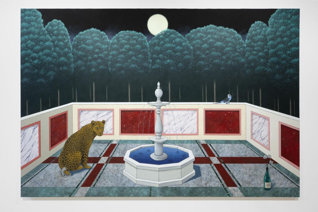 Al centro delle nuove opere compaiono animali esotici e specie minacciate, collocate all’interno di ambienti che ricordano reliquiari, teche museali o spazi liturgici. Luoghi concepiti per proteggere, ma che finiscono per rivelare una dimensione claustrofobica, quasi carceraria. È in questa ambiguità — tra cura e controllo, salvaguardia e possesso — che la pittura di Preston trova la sua tensione più incisiva. La natura viene venerata, ma solo a patto di essere contenuta, organizzata, resa contemplabile.