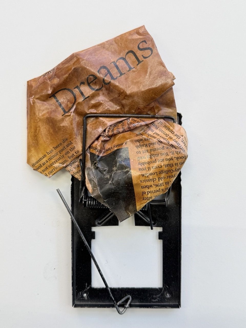 Presente storico (1997-2011) configura una vera e propria ‘storia di visioni’ in cui il passato e il presente si compenetrano. Le immagini vengono rielaborate fino a perdere la loro dimensione contingente, trasformandosi in tracce sospese nel tempo, capaci di attivare una memoria stratificata e critica. La serie Traps (2012-2016) è realizzata a partire da comuni trappole per topi che fissano alcune parole emblematiche della contemporaneità, ritagliate da pagine di giornali. Fissate nella cera e bloccate dal mezzo meccanico – Dreams, Security, Love … – diventano oggetti e il linguaggio un dispositivo di cattura. Dalla parola al mito, il ciclo Mitografie (2011-2015) è una riflessione sulla costruzione del mito nell’era dei media. Marylin Monroe, Venere contemporanea, appare immersa e quasi fluida, tra le pagine in bianco e nero di un giornale. La bellezza e i suoi canoni sono mutevoli e costantemente ridefiniti dal contesto che li accoglie. L’immagine torna protagonista nelle Interferences (2014-2016): una sterminata collezione di fotografie provenienti da banche dati, elemento quotidiano ed essenziale del processo editoriale, che scorrono, prima ancora dello swipe, dettagliate o caotiche, banali o iconiche, e raccontano, prima ancora del loro contenuto di storia e di rappresentazione, del predominio dell’immagine sulla parola.
